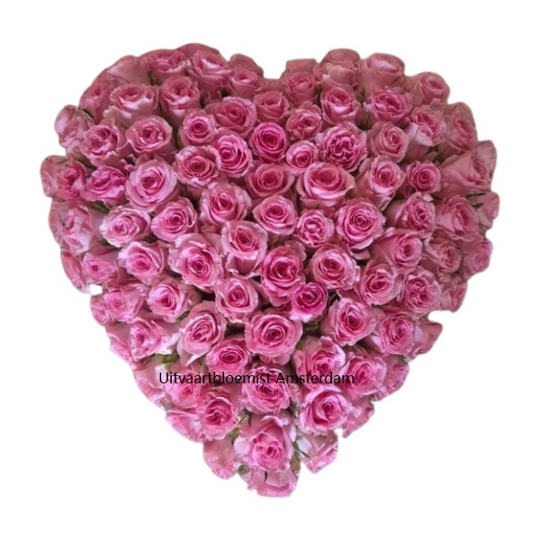 Rouwhart Amsterdam Zuid met roze rozen bestellen voor elke uitvaart of afscheid in Amsterdam